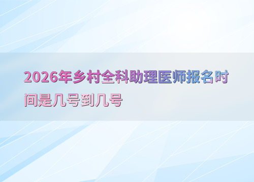 2026年乡村全科助理医师考试报名预计在1月至2月进行,具体日期参考往年安排:2025年为2月8日至2月21日,2024年为1月22日至2月4日。