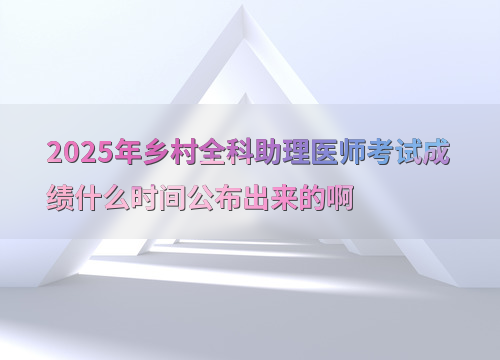 2025年乡村全科助理医师综合考试成绩预计在9月公布,参考近年时间规律(如2024年9月13日、2023年9月19日),考后约1个月左右可查。