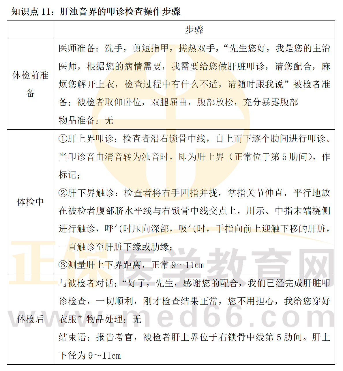 2023乡村助理医师实践技能考试备考倒计时,一定要利用好最后的冲刺时间拔高提分!正保医学教育网帮考生整理了2023乡村助理医师实践技能必考考点肝浊音界的叩诊检查操作步骤总结表,速度收藏!