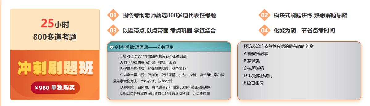 虽然仅剩个位数的备考时间,但大家也要充分利用起来,医学教育网的“冲刺突破班”在最后的备考时间为大家助力!笔试冲刺突破班,全程直播带你刷题,多位老师亲授、39小时互动直播、800道甄选试题、精编模拟试卷,冲刺突破班=冲刺刷题+实战模考。赶快选择学习!点击购买>