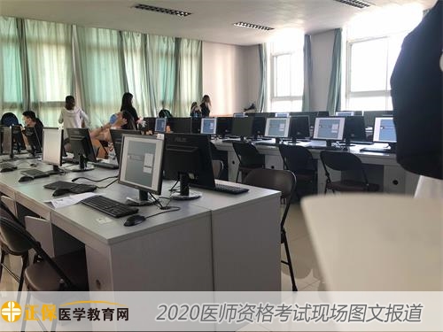 全国乡村全科助理医师医学综合考试2020年8月22日正式拉开序幕,全国几十万考生带着自己的医师梦开启了新的征程。此次考试全部采用计算机作答的形式,进入考场,我们能够看到机位,电脑全部已经开机准备就绪,电脑页面是国家医学考试网考试中心机考系统,下面是2020年乡村全科助理医师笔试机考现场报道--机考现场。