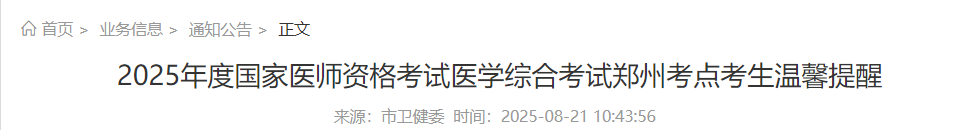 河南郑州2025年乡村全科助理医师笔试考生温馨提示