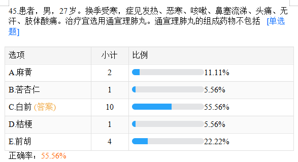 以上就是医学教育网关于“【基础摸底测试】通宣理肺丸的组成药物不包括”的相关介绍,希望能够帮助到大家,更多资讯尽在医学教育网乡村全科助理医师栏目!