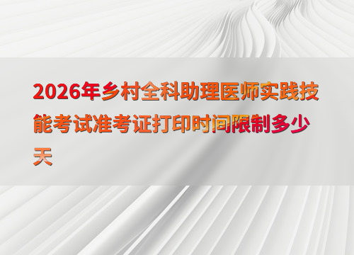 2026年乡村全科助理医师实践技能考试时间为6月6日至17日,准考证打印时间因地区而异,通常在考前1-2周开放,考生需登录国家医学考试中心官网完成打印。