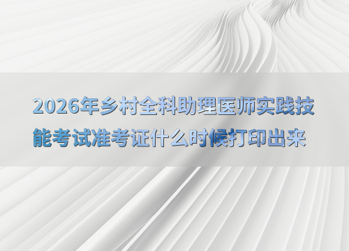 2026年乡村全科助理医师实践技能考试定于6月6日至17日举行,准考证打印时间因地区而异,通常在考前1-2周开放。