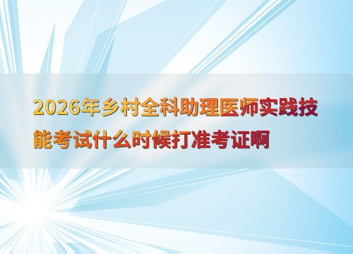2026年乡村全科助理医师实践技能考试时间为6月6日至17日,准考证打印时间各地不一,一般在考前1-2周登录国家医学考试中心官网进行打印。