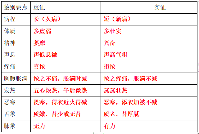 28.虚证与实证的鉴别见下表