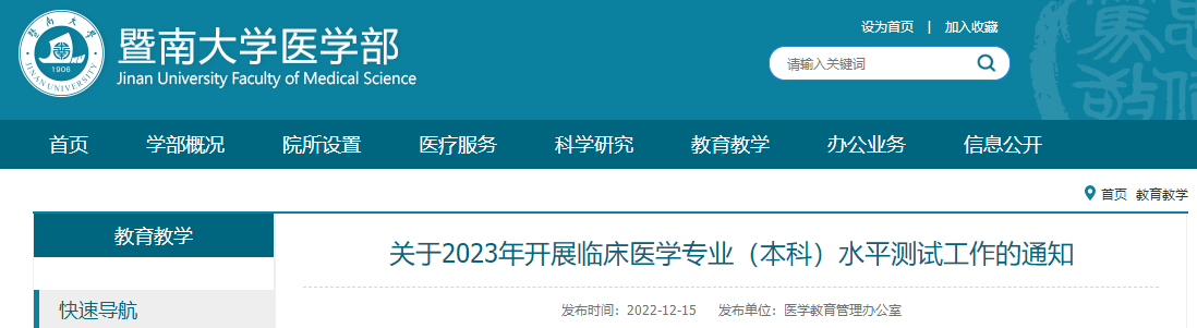 暨南大学关于2023年开展临床医学专业(本科)水平测试工作的通知