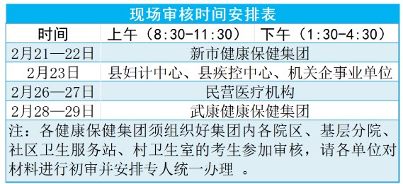 为提高工作效率、减少人员过度集中,请各单位安排专人根据时间安排携带相关资料到德清县卫生健康局中医科教科进行现场确认及审核。如因特殊原因,造成无法进行现场审核的考生,请及时联系所属医疗机构,在规定时间内提交所需材料的前提下,进行错时审核。