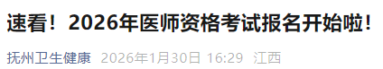 江西抚州2026年医师资格考试报名现场审核时间|材料要求已公布!请相关考生及时查看,做好报名审核准备!