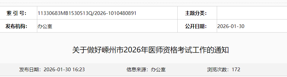 浙江嵊州考点2026年医师资格考试报名&审核&考试安排已公布!请相关考生及时查看,做好报名审核准备!
