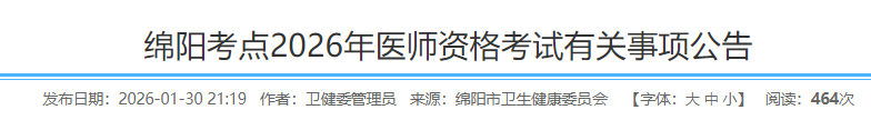 四川绵阳考点2026年医师资格考试报名|审核|考试安排已公布!请相关考生及时查看,做好报名审核准备!