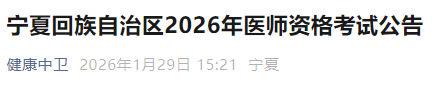 根据《国家卫生健康委员会医师资格考试委员会公告》(2026年1号)有关规定,临床、口腔、公共卫生类别和乡村全科执业助理医师医学人文部分启用修订后的考试大纲。现将宁夏回族自治区2026年医师资格考试有关事项公告如下: