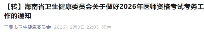 海南三亚2026年医师资格考试报名&审核&考试时间安排已公布!请相关考生及时查看,按时完成报名审核!