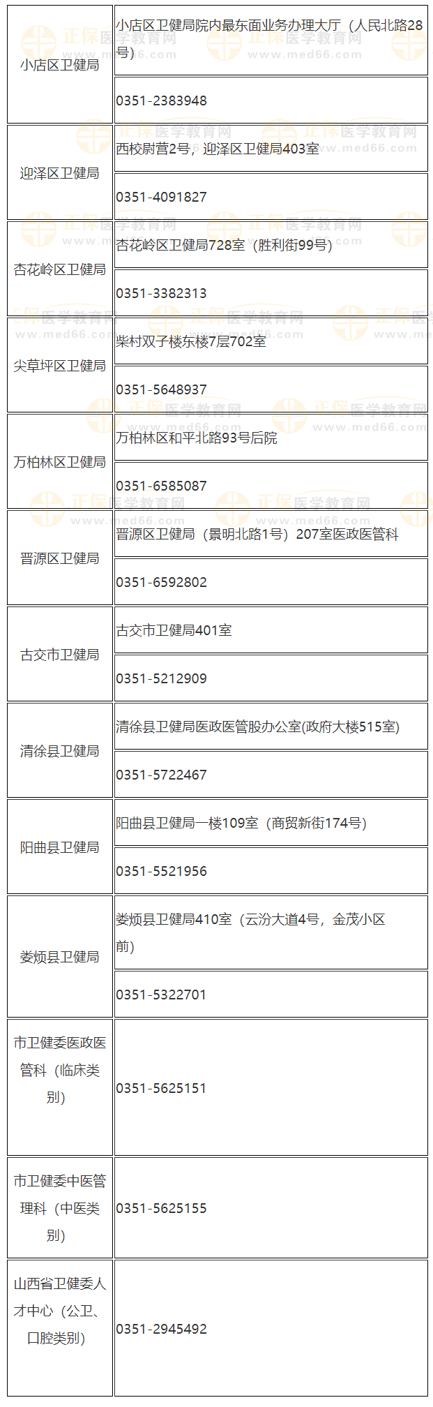 各县(市、区)卫健局现场确认地址及咨询电话: