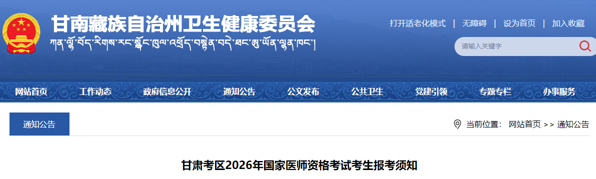 根据《国家卫生健康委员会医师资格考试委员会公告》(2026年第1号),依据《中华人民共和国医师法》和《医师资格考试暂行办法》规定,现将甘肃考区2026年国家医师资格考试考生报名有关事项通知如下: