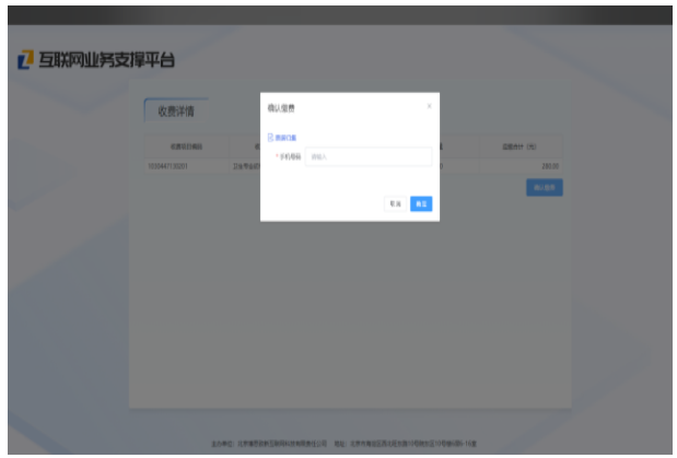 4.进入支付页面,确认项目、金额等信息无误后,点击确认缴费按钮,并输入报考人手机号,如图2、图3所示。