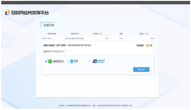 5.选择缴费渠道,渠道支持微信、支付宝、银联在线支付,并点击确认支付,跳转支付二维码并扫码进行支付,如图4所示。