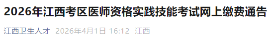 官方速报!江西省2026年医师资格考试实践技能缴费4月2日开始!以下为江西省考区官方提醒,请相关考生仔细查看,按时完成技能缴费!