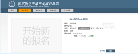 (三)完成缴费。考生最终缴费成功的标志,以国家医学考试服务平台考生服务端中的“已缴费”为准。(如下图)