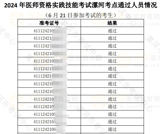 2024年河南考区漯河考点6月21日医师实践技能考试通过名单已公布!请各位考生进入“漯河市卫生健康委员会官网”或者“漯河市考试中心”微信公众号查看合格名单。医学教育网小编为大家整理官方通知如下: