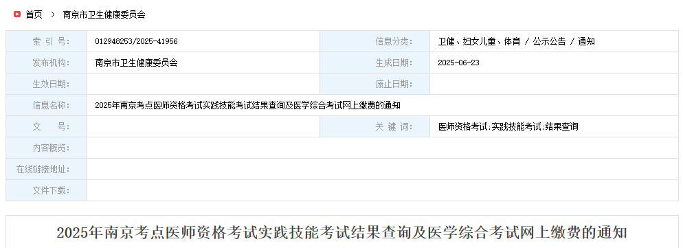 现将南京考点医师资格考试实践技能考试结果查询及医学综合考试网上缴费的有关事项通知如下: