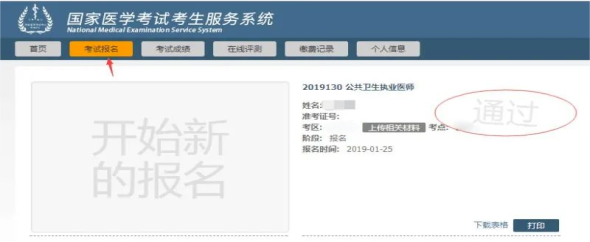(三)在考生个人报名界面中,点“考试报名”即可查看技能考试结果:“技能通过”、“技能未通过”。