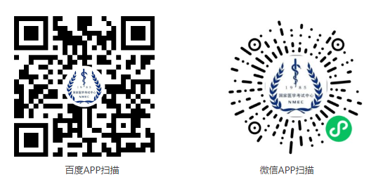 国家医学考试中心已开通百度小程序和微信小程序,考生可使用手机中的百度APP和微信APP,扫描二维码,输入“准考证号”、“证件编号”和“图片识别码”进行查询。