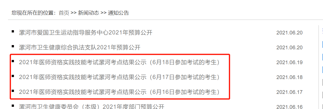 漯河考点2021年6月16-27日医师资格实践技能考试成绩现已公示,广大医考生可以登录漯河市卫健委官网查询分数,具体查分地址如下: