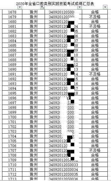2020年全安徽省口腔类别实践技能考试成绩汇总表