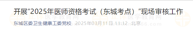 2025年医师资格考试(北京东城考点)现场审核,共完成线上、线下审核确认1499人次。官方通知如下: