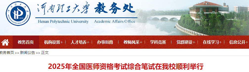 河南理工大学共1761名考生参加2025年医师资格综合笔试考试,以下为河南理工大学官方报道: