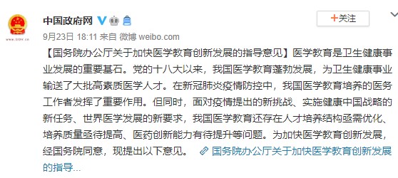 国务院办公厅印发《关于加快医学教育创新发展的指导意见》医考快报