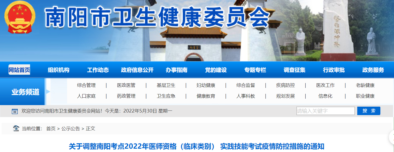 关于调整南阳考点2022年医师资格(临床类别) 实践技能考试疫情防控措施的通知发布,提醒各位考生及时查看最新通知。
