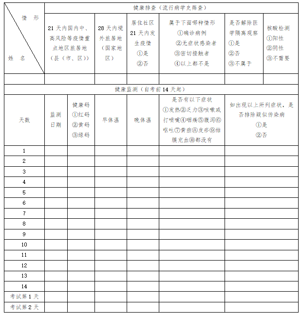 山东考区发布了“医师资格实践技能考试人员健康管理信息采集表”,医学教育网小编搜集整理如下: