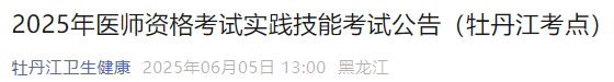 为做好2025年国家医师资格考试实践技能考试工作,现将牡丹江考点医师资格考试实践技能考试有关事宜公告如下: