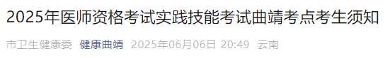 云南曲靖2025年医师资格实践技能考场安排&考生须知已公布,请相关考生及时查看,做好技能应试准备!