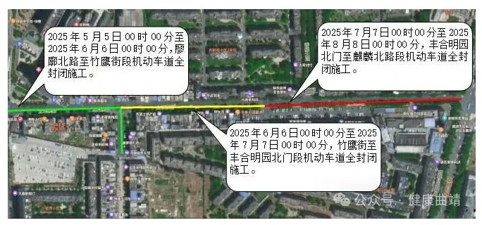 (三)2025年7月7日00时00分至2025年8月8日00时00分,太和东路丰合明园北门至麒麟北路段机动车道全封闭施工,禁止车辆通行。