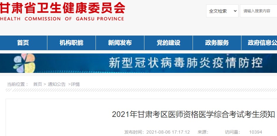 甘肃考区2021年医师资格考试综合考试准考证打印8月10日起,登录国家医学考试中心网站即可打印。《2021年甘肃考区医师资格医学综合考试考生须知》,准考证打印如下: