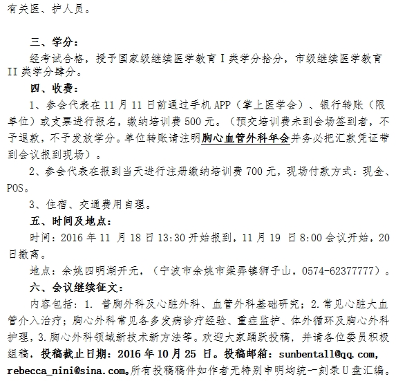 2016年宁波市医学会胸心血管外科分会学术年会通知
