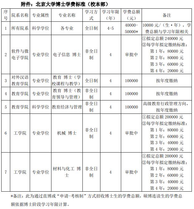 附件:北京大学博士学费标准 (校本部)