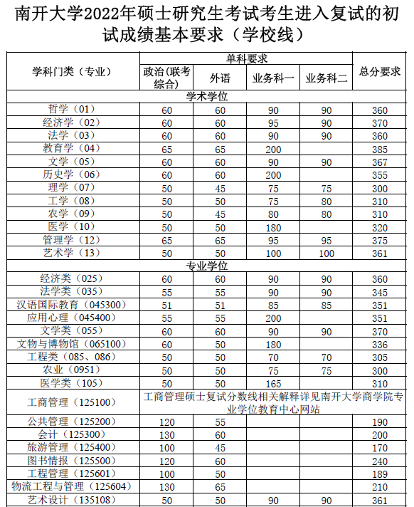 2022年考研的国家线已经公布了!34所自主划线的院校也已经陆续公布分数!34自主划线院校中的南开大学已经公布了2022年考研的复试分数线,为了帮助报考了南开大学的考生了解,医学教育网小编整理如下: