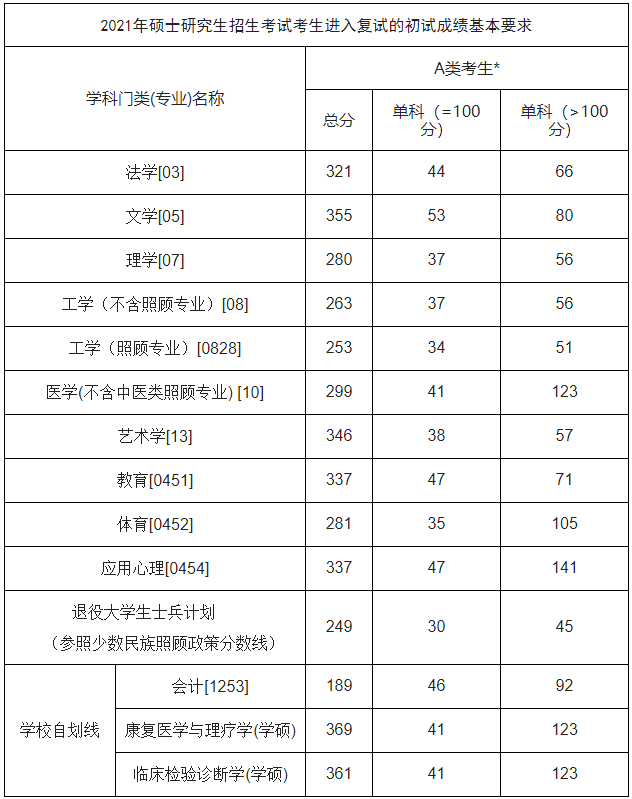 2021年我校拟招生1000人(含退役大学生士兵计划7人),具体招生人数以国家下达招生计划为准。各招生学科复试分数线不得低于国家复试合格线A类线,可以提高复试分数线: