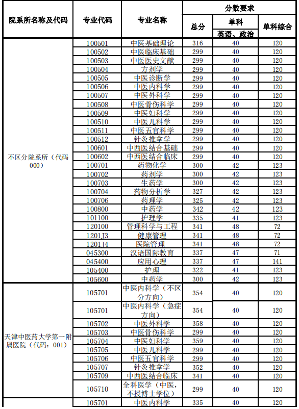 2.天津中医药大学2021年少数民族高层次骨干人才计划硕士研究生入学考试复试基本分数 要求总分不低于249 分(单科满分=100分的科目,单科线不低于30分;单科满分>100分, 单科线不低于45分)。