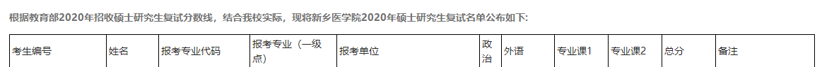 医学教育网小编在新乡医学院研究生院的官网上查阅到了“2020年新乡医学院研究生进入复试的考生名单”,为帮助各位想要报考新乡医学院的考生了解,医学教育网小编整理通知内容如下: