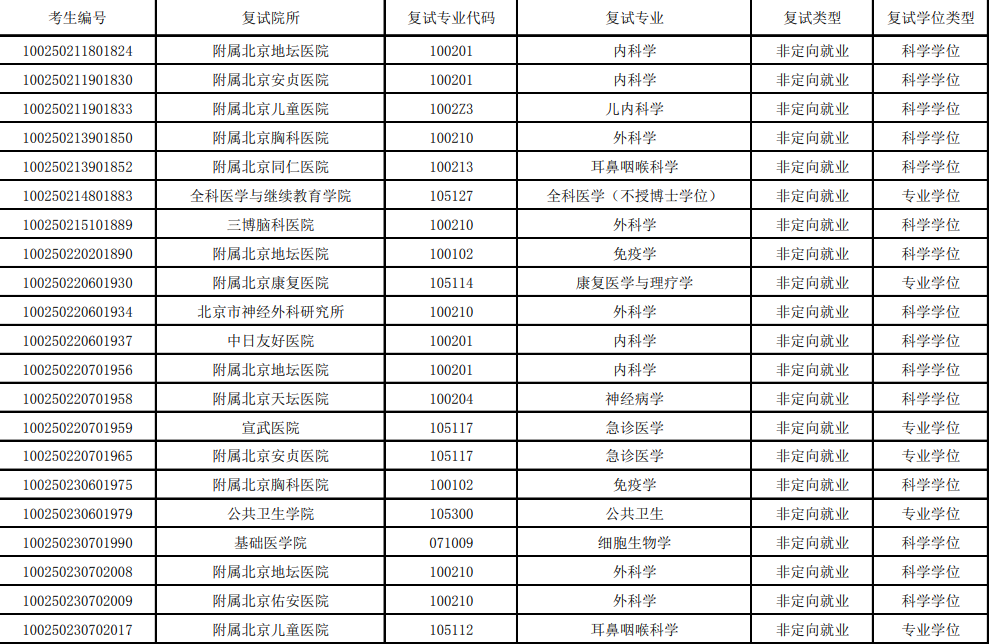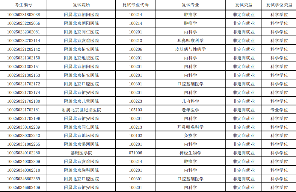 以上是医学教育网小编整理的“首都医科大学2020年硕士研究生第一批调剂复试资格表”全部内容,想了解更多医学考研知识及内容,请点击医学教育网。预祝大家顺利通过复试!