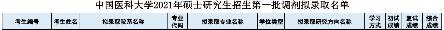 为帮助各位考生及时了解录取结果,医学教育网小编从中国医科大学研究生院的官网上查找到了“中国医科大学2021年硕士研究生招生第一批调剂拟录取名单公示”通知内容如下,请同学仔细查看!有问题请及时联系学校!