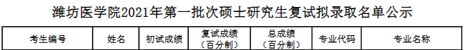 很高兴各位考生在新的学期就可以开始自己三年的研究生生活!以上是医学教育网小编整理的“潍坊医学院2021年第一批次硕士研究生复试拟录取名单公示”全部内容,想了解更多医学考研知识及内容,请点击医学教育网。
