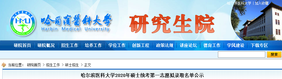 附件:哈尔滨医科大学2020年硕士统考第一志愿拟录取名单公示