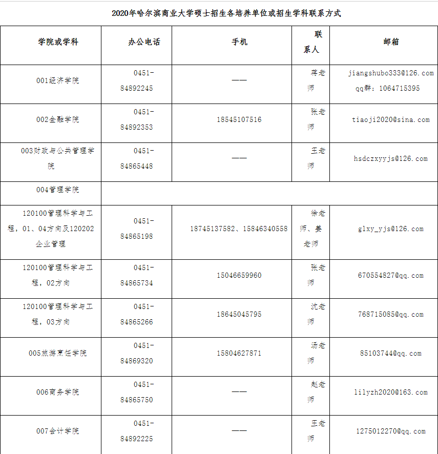 有调剂意向的考生,欢迎你们通过电话或电子邮箱进行联系和咨询,并请你们持续关注中国研究生招生信息网的调剂系统、哈尔滨商业大学研究生学院网站、“哈尔滨商业大学研究生学院”微信公众号,第一时间查阅相关通知公告和我校各研究生培养学院的招生动态。